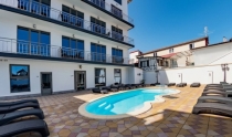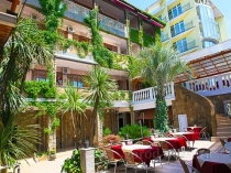 Расположен на берегу моря всего в 10 м от благоустроенного пляжа. Элитный внутренний интерьер и роскошное убранство номеров с итальянской мебелью прекрасно дополняется органично выполненным фасадом, благоустроенной территорией, собственным рестораном. Эта частная гостиница имеет свой выход на пляж.