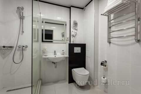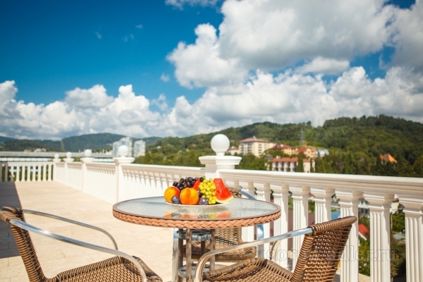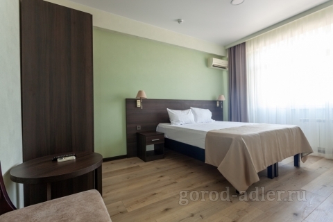 Все номера в отеле имеют полный спектр удобств и балконы. На территории отеля есть открытый круглогодичный бассейн с подогреваемой водой, аэрарии, игровая площадка. Отель можно рекомендовать для отдыха с детьми в Адлере.